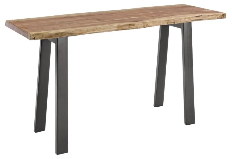 GAMBE IN ACCIAIO VERNICIATO A POLVERE EPOSSIDICA. PIANO IN LEGNO DI ACACIA CON BORDI IRREGOLARI (EFFETTO LEGNO VIVO). FINITURA A BASE DI VERNICE POLIURETANICA. ESSENDO UN PIANO LAVORATO A MANO, LE FORME E LE MISURE DEL LEGNO SONO SOLO INDICATIVE. TUTTI I PRODOTTI SARANNO DIVERSI L’UNO DALL’ALTRO. GAMBE DA ASSEMBLARE.