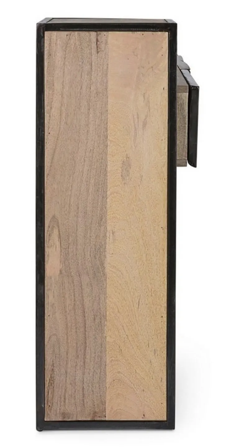 STRUTTURA IN LEGNO MANGO ED ACCIAIO, SCHIENALE IN COMPENSATO. FRONTALE ANTE E CASSETTI IN LEGNO RICICLATO O LAMINA DI ACCIAIO O FINITURA IN FIBRA DI CEMENTO. FINITURA ACRILICA PROTETTIVA. PIEDINI REGOLABILI. IL PRODOTTO IN LEGNO RICICLATO È CARATTERIZZATO DALLA PRESENZA DI TASSELLI IN LEGNO DI DIVERSE SPECIE E COLORE. EVENTUALI FESSURE, CREPE O IMPERFEZIONI, CHE POSSONO