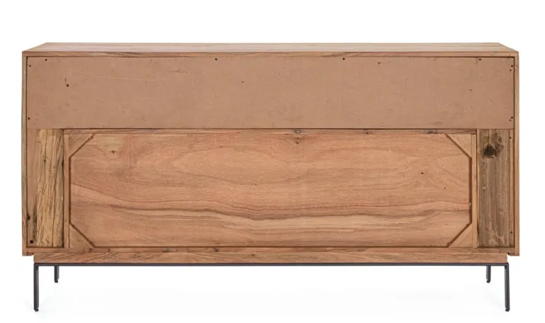 STRUTTURA IN LEGNO DI ACACIA, SCHIENALI IN COMPENSATO, INTERNO A VISTA IN LEGNO RICICLATO. FINITURA ACRILICA PROTETTIVA. ANTE CON CERNIERA CHIUSURA AMMORTIZZATA. MANIGLIE E GAMBE IN ACCIAIO. VANO PORTA COMPRENSIVO DI MENSOLA. GAMBE DA ASSEMBLARE.
