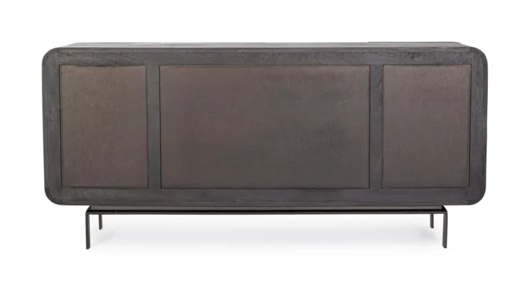 STRUTTURA IN LEGNO DI MANGO, SCHIENALE IN MDF. FINITURA A BASE DI NITROCELLULOSA. BASE GAMBE IN ACCIAIO VERNICIATO A POLVERE EPOSSIDICA. VANO PORTA COMPRENSIVO DI MENSOLA. GAMBE DA ASSEMBLARE.