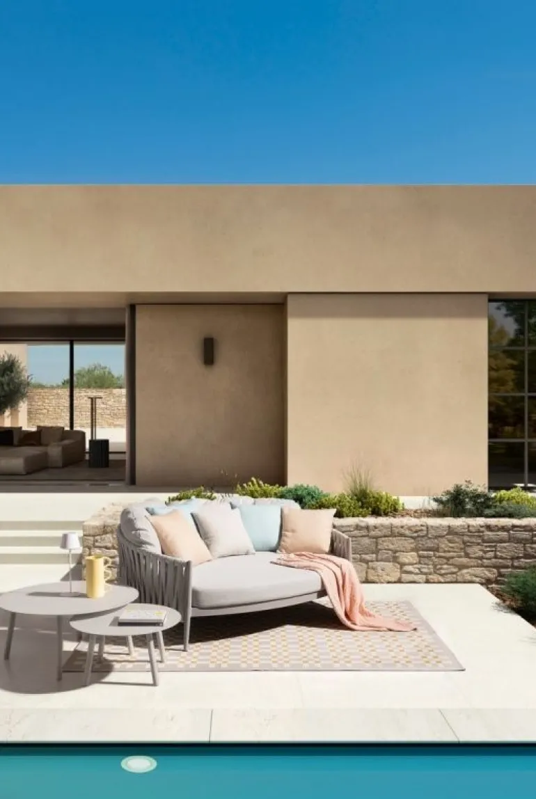 STRUTTURA IN ALLUMINIO VERNICIATO A POLVERE (POLIESTERE). INTRECCIO CON CORDE IN TETORON (100% POLIESTERE) CON IMBOTTITURA IN GOMMA (POLIETILENE). CUSCINI SEDUTA E SCHIENALE SFODERABILI IN TESSUTO IDROREPELLENTE OLEFIN (100% POLIPROPILENE).