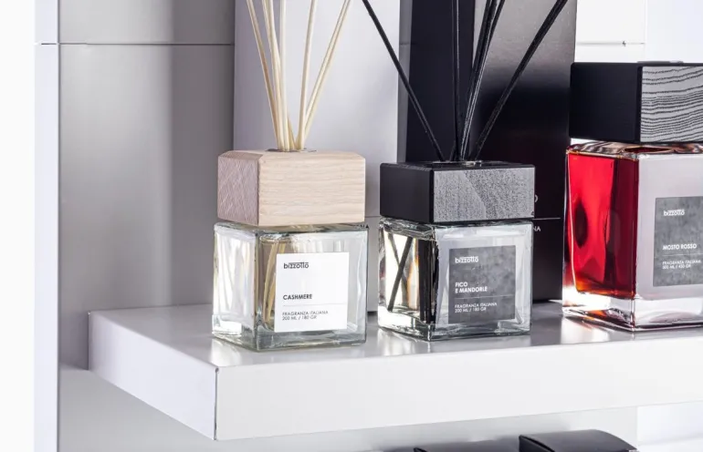 CASHMERE FRAGRANZA PER AMBIENTI CON 6 BASTONCINI BIANCHI (H 30 CM). PROFUMO APPARTENENTE ALLA FAMIGLIA DEI FIORITI. BOTTIGLIA IN VETRO, FORMATO 200 ML. CONTROTAPPO IN PLASTICA E TAPPO DECORATIVO IN LEGNO NATURALE. AREA DI COPERTURA 40 MQ. FRAGRANZA DELICATA CHE DONA SENSAZIONI DI BENESSERE, CON NOTE MORBIDE E AVVOLGENTI DI VANIGLIA E MUSCHIO BIANCO CHE INCONTRANO ACCORDI