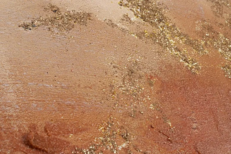 STAMPA SU TELA DIPINTA A MANO CON APPLICAZIONI FOGLI DORATI. CORNICE IN PLASTICA. TELAIO IN MDF.