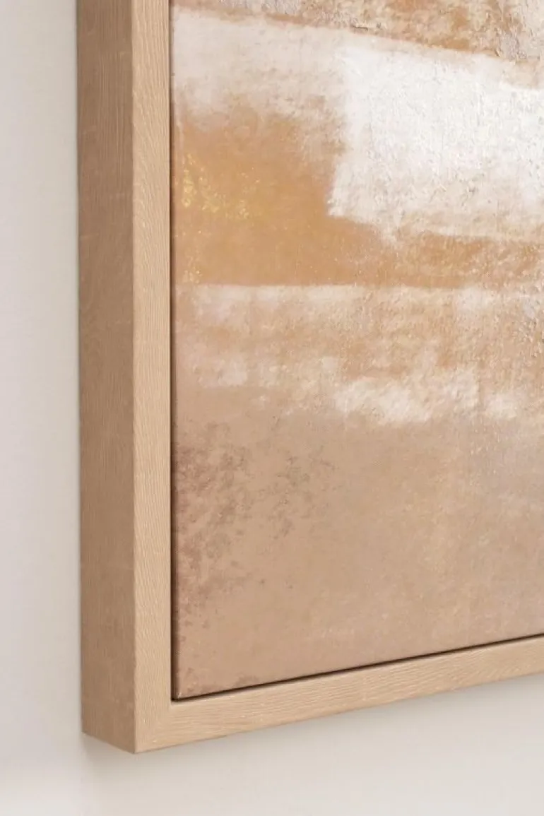 STAMPA SU TELA DIPINTA A MANO CON APPLICAZIONI FOGLI DORATI. CORNICE IN PLASTICA. TELAIO IN MDF.