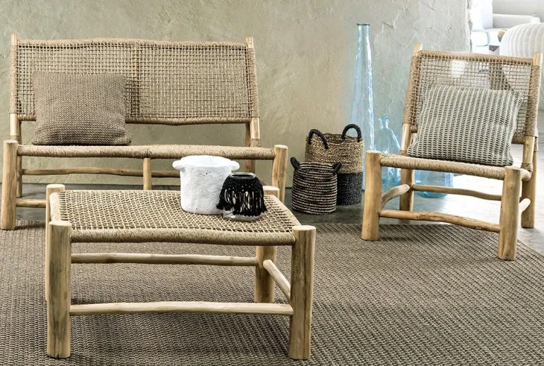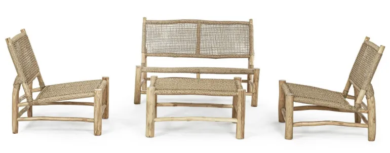 STRUTTURA IN RAMI DI TEAK, SEDUTA E SCHIENALE CON INTRECCIO IN FIBRA SINTETICA (VIRO). SI RACCOMANDA DI NON ESPORRE L’ARTICOLO ALLA LUCE DIRETTA DEL SOLE ED ALLE INTEMPERIE. FESSURAZIONI E PICCOLE CREPE NELLA STRUTTURA SONO DA RITENERSI CONDIZIONI NATURALI DEL PRODOTTO. IMBALLO SENZA CARTONE.