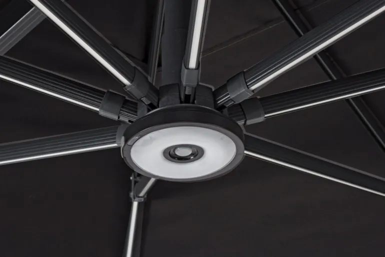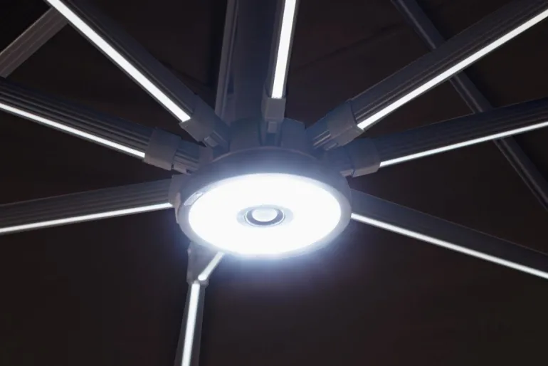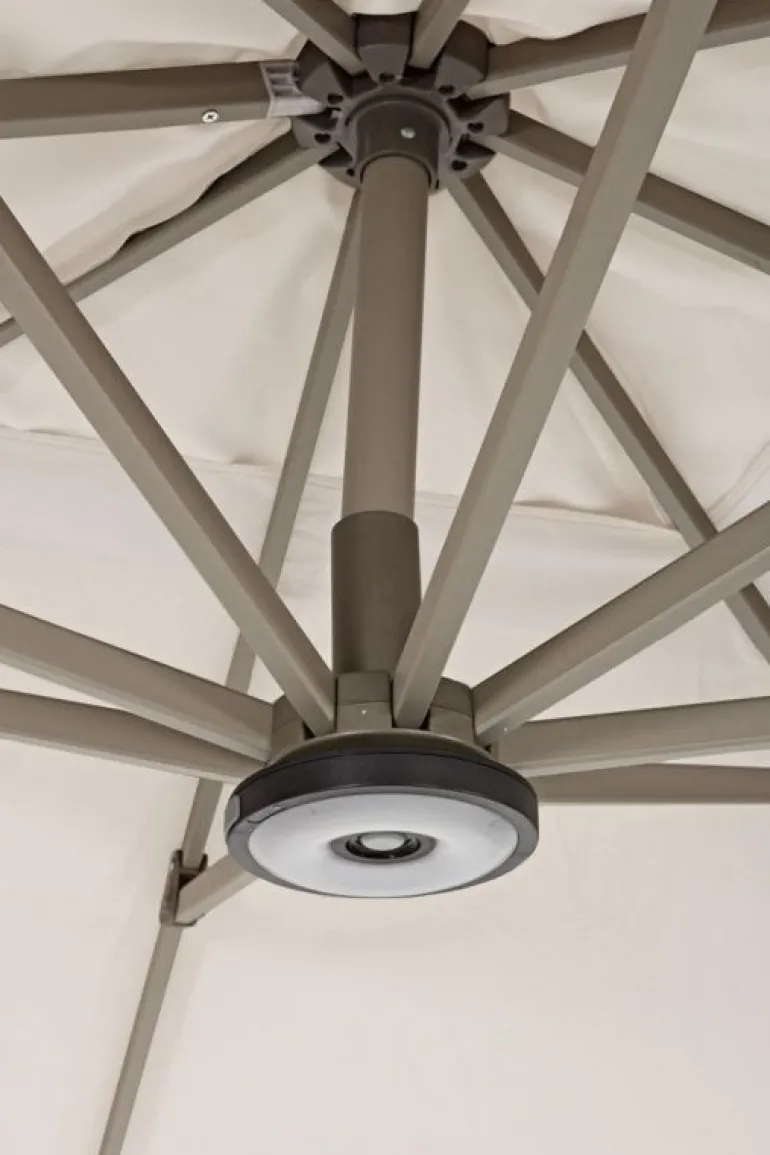 LAMPADA A LED BIANCO PER OMBRELLONI SARAGOZZA, ORLAND, INES, CALIS, EDEN, ORION. RICARICABILE TRAMITE CAVO USB. INTENSITA’ LUMINOSA REGOLABILE.