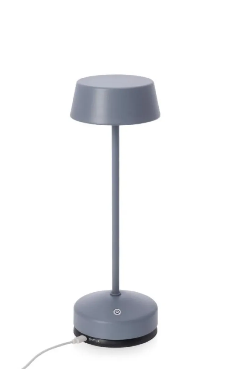 METALLO VERNICIATO A POLVERE, LAMPADA LED, 6 LED LUCE FREDDA E 6 LED LUCE CALDA, LUCE DIMMERABILE, BATTERIA RICARICABILE CON BASE DI RICARICA IN PLASTICA NERA E CAVO USB NERO 0,8 MT INCLUSO. TASTO ON/OFF TOUCH. PER USO INTERNO ED ESTERNO, IP44.