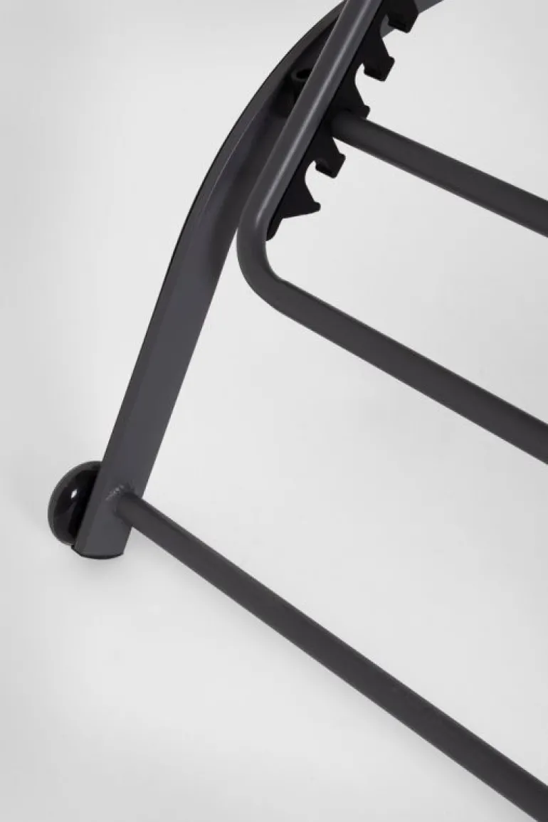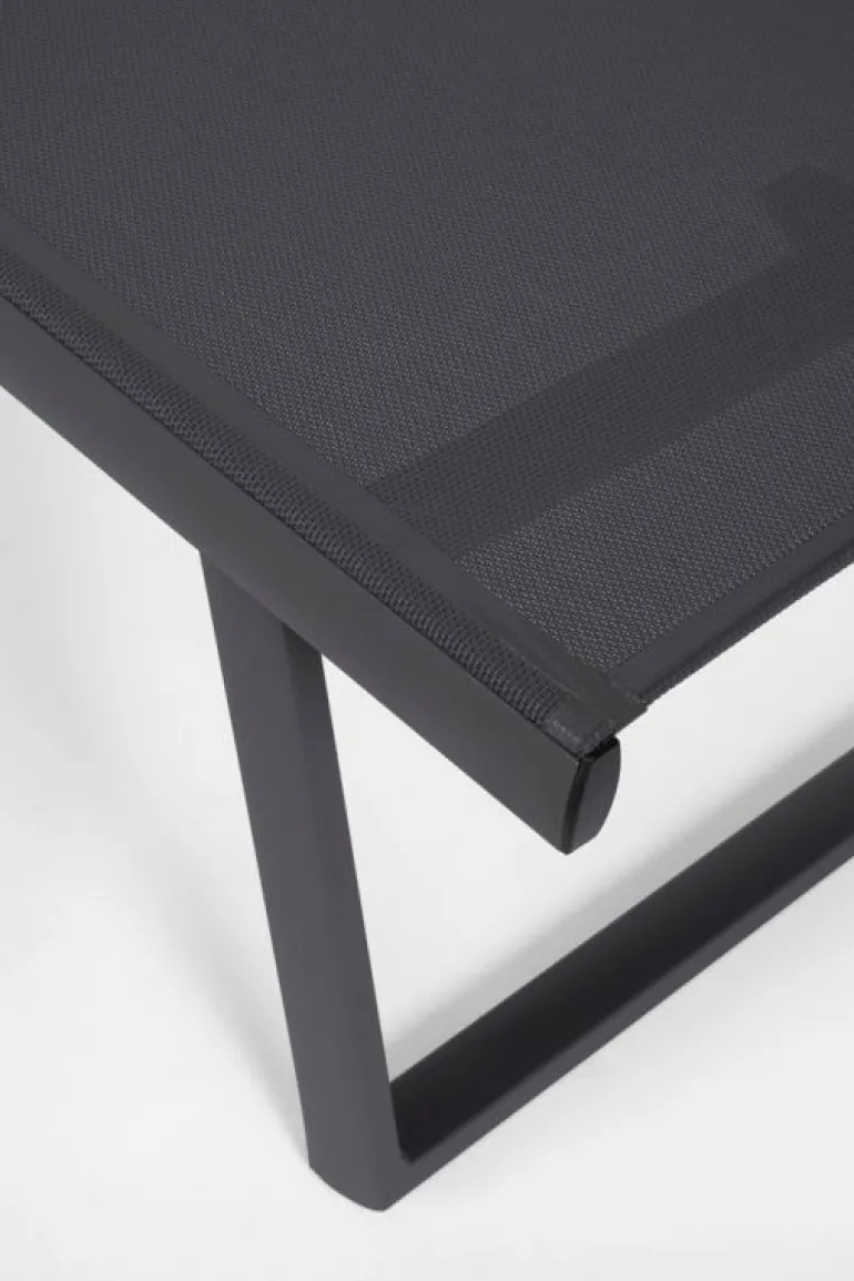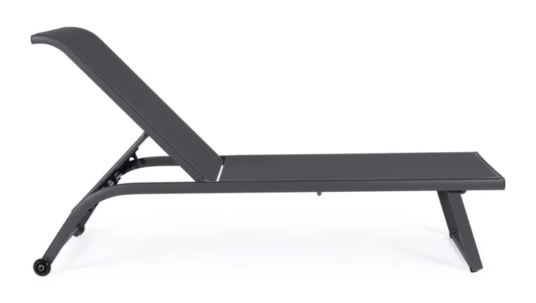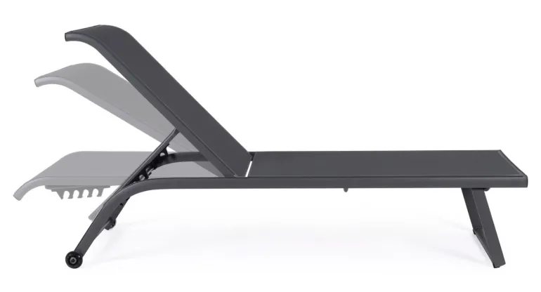 STRUTTURA IN ALLUMINIO, VERNICIATO A POLVERE (POLIESTERE). SEDUTA E SCHIENALE RIVESTITI IN TEXTILENE 2X1 (610G/M2). SCHIENALE RECLINABILE (4 POSIZIONI). VITERIA IN ACCIAIO GALVANIZZATO. RUOTE DA ASSEMBLARE IN PLASTICA (PU).