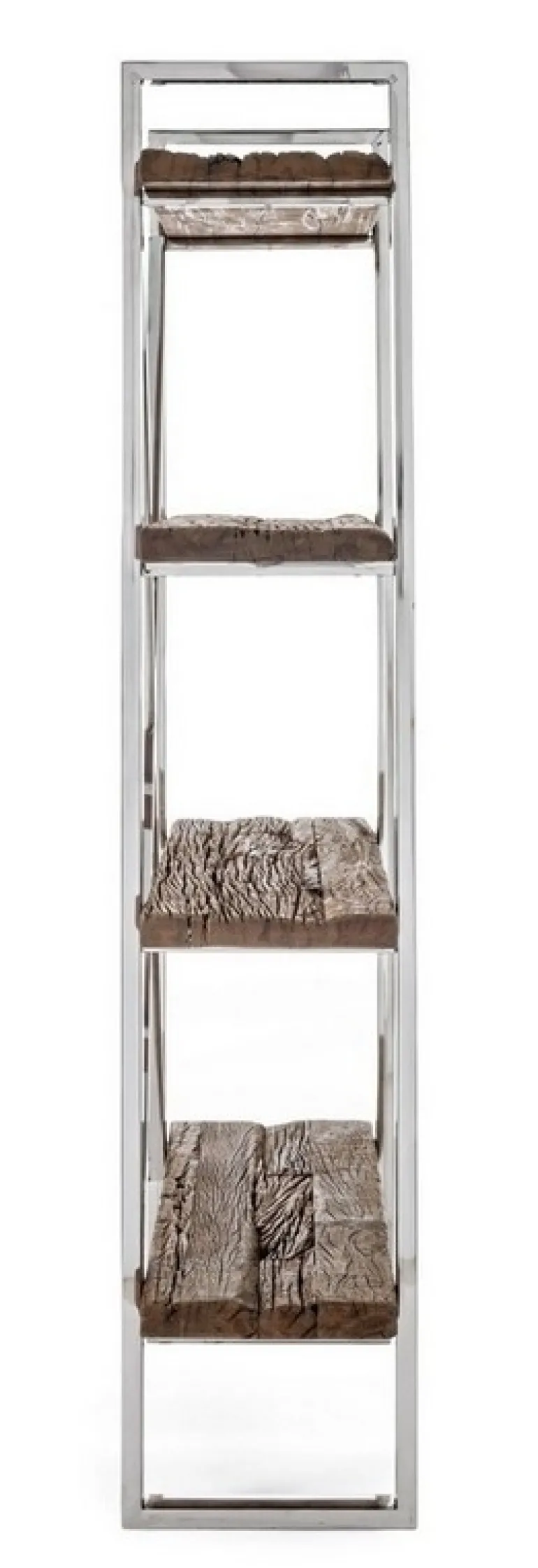 STRUTTURA IN ACCIAIO INOSSIDABILE, PIANI IN LEGNO RICICLATO. FINITURA NATURALE. IL PRODOTTO IN LEGNO RICICLATO È CARATTERIZZATO DALLA PRESENZA DI TASSELLI IN LEGNO DI DIVERSE SPECIE E COLORE. EVENTUALI FESSURE, CREPE O IMPERFEZIONI, CHE POSSONO GENERARSI ANCHE NEL CORSO DEL TEMPO, SONO CARATTERISTICHE DI QUESTO MATERIALE E RENDONO OGNI PEZZO UNICO E ORIGINALE.