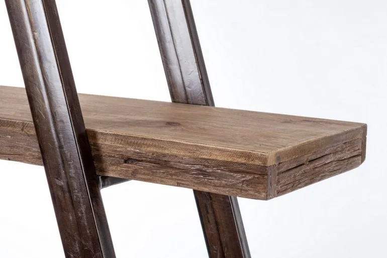 STRUTTURA IN LEGNO MANGO ED ACCIAIO. RIPIANI IN LEGNO RICICLATO O LAMINA DI ACCIAIO O FINITURA IN FIBRA DI CEMENTO. FINITURA ACRILICA PROTETTIVA. PIEDINI REGOLABILI. IL PRODOTTO IN LEGNO RICICLATO È CARATTERIZZATO DALLA PRESENZA DI TASSELLI IN LEGNO DI DIVERSE SPECIE E COLORE. EVENTUALI FESSURE, CREPE O IMPERFEZIONI, CHE POSSONO GENERARSI ANCHE NEL CORSO DEL TEMPO,