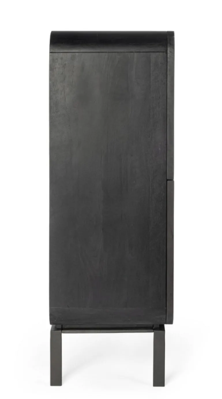 STRUTTURA IN LEGNO DI MANGO, SCHIENALE IN MDF. FINITURA A BASE DI NITROCELLULOSA. BASE GAMBE IN ACCIAIO VERNICIATO A POLVERE EPOSSIDICA. VANO PORTA COMPRENSIVO DI MENSOLA. GAMBE DA ASSEMBLARE.