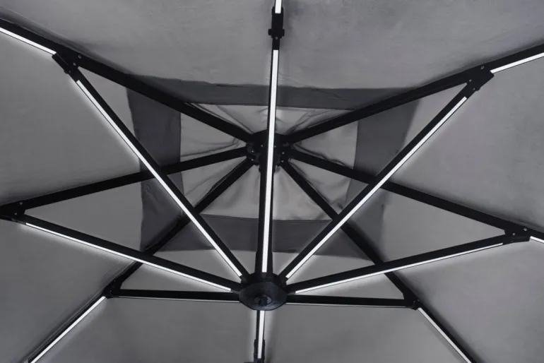 OMBRELLONE BRACCIO CON LED IN ALLUMINIO 3X3 ANTRACITE – INES