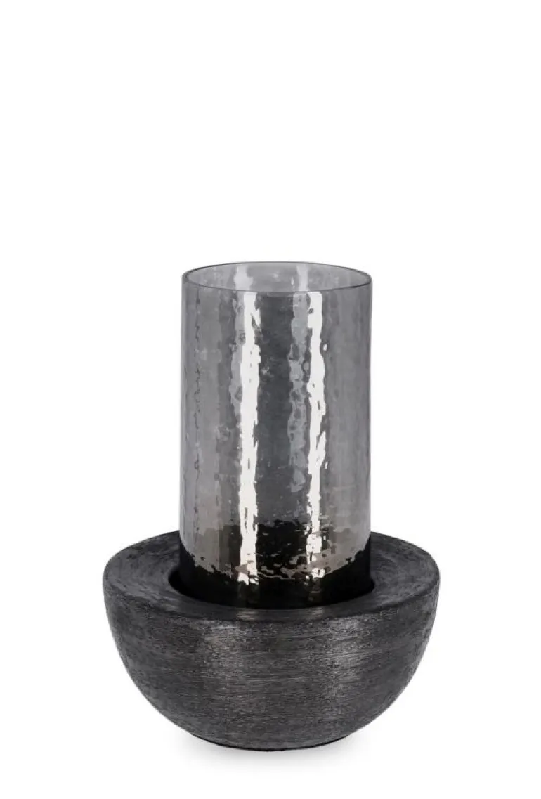METALLO LAVORATO ARTIGIANALMENTE, FINITURA NERO SPAZZOLATO, VETRO. SOLO PER USO DECORATIVO. PRODOTTO FATTO A MANO. EVENTUALI VARIAZIONI DI COLORE, TONALITÀ O IMPERFEZIONI SONO DA CONSIDERARSI UNA CARATTERISTICA DI UNICITÀ.