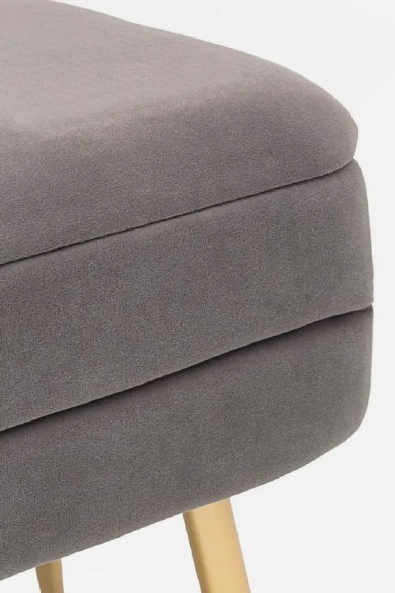 STRUTTURA IN MDF E COMPENSATO. GAMBE IN ACCIAIO CROMATATURA DORATA. RIVESTIMENTO IN POLIESTERE EFFETTO VELLUTO. DENSITA’ IMBOTTITURA 30KG/M3. GAMBE DA ASSEMBLARE.