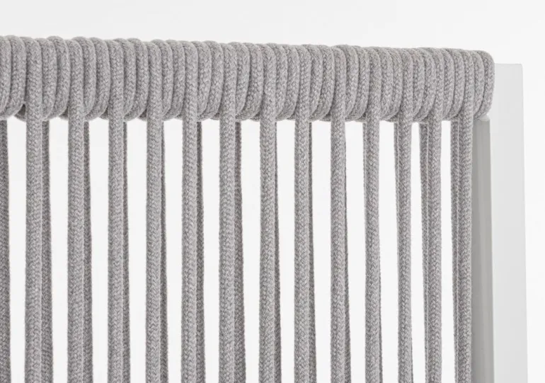 STRUTTURA IN ALLUMINIO VERNICIATO A POLVERE (POLIESTERE). INTRECCIO CON CORDA IN OLEFIN (100% POLIPROPILENE). PIEDINI DA ASSEMBLARE.