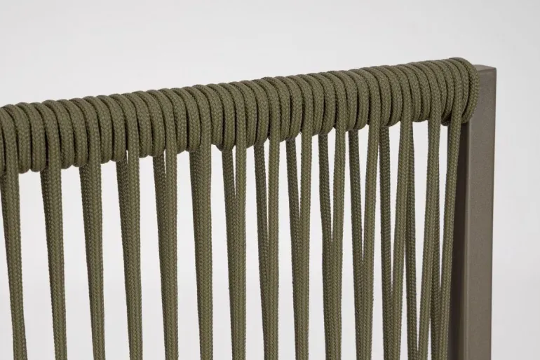 STRUTTURA IN ALLUMINIO VERNICIATO A POLVERE (POLIESTERE). INTRECCIO IN CORDA DI TEXTILENE CON IMBOTTITURA IN GOMMA NITRILICA. PIEDINI DA ASSEMBLARE.