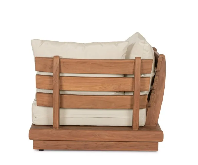 STRUTTURA IN IN TEAK – SVLK (LEGNO CERTIFICATO PROVENIENTE DA FORESTE SOSTENIBILI), FINITURA FINALE A BASE D’ACQUA. CUSCINI SFODERABILI IN TESSUTO IDROREPELLENTE SUNPROOF OLEFIN (100%POLYPROPYLENE). IL TEAK È UN LEGNO RICCO DI OLII. CON IL PASSARE DEL TEMPO, QUESTI OLII, PER UN PROCESSO NATURALE, RISALGONO IN SUPERFICIE E POSSONO MACCHIARE EVENTUALI CUSCINI A DIRETTO CONTATTO CON IL LEGNO.