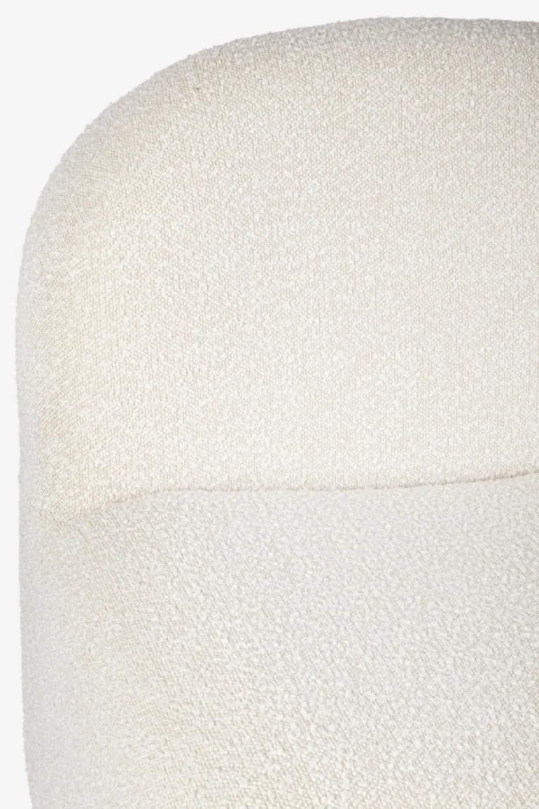 STRUTTURA IN LEGNO DI PINO E COMPENSATO. PIEDINI IN RUBBERWOOD. RIVESTIMENTO IN POLIESTERE EFFETTO BOUCLE’. DENSITA’ IMBOTTITURA IN SCHIUMA POLIURETANICA 16/24 KG/M3.