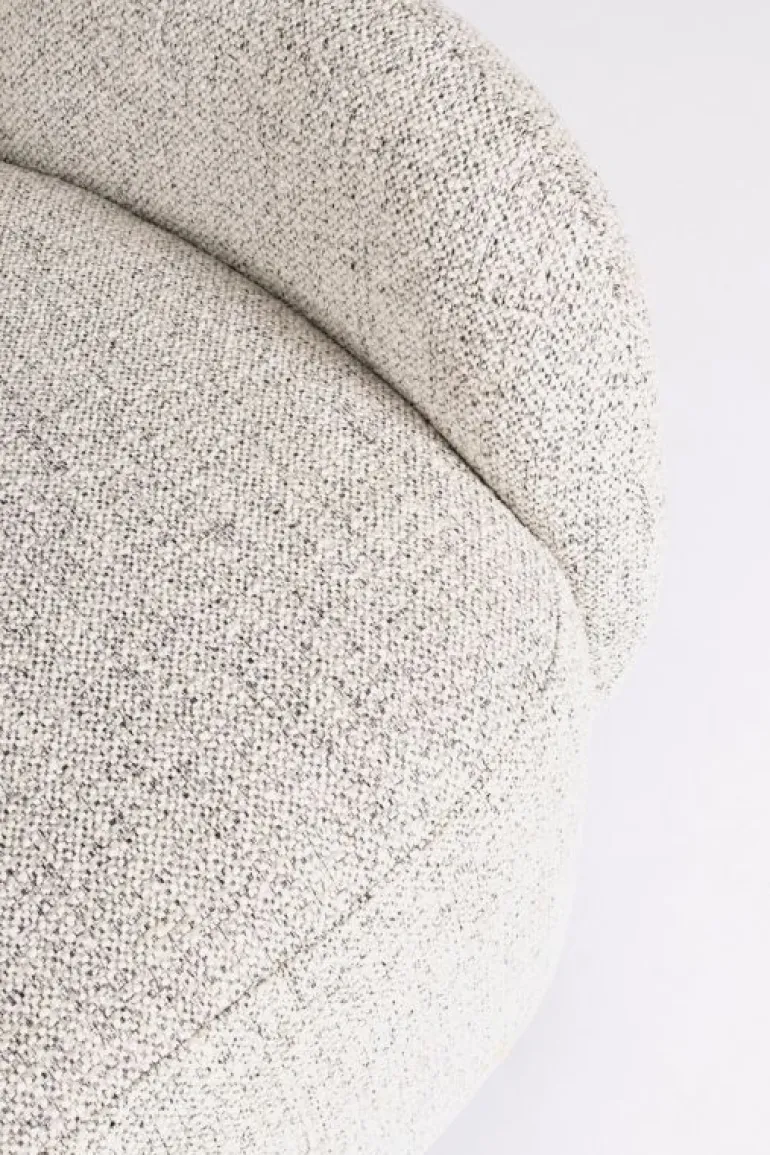 STRUTTURA IN COMPENSATO. RIVESTIMENTO IN POLIESTERE. IMBOTTITURA IN SCHIUMA POLIURETANICA (DENSITA’ 25KG/M3 SEDUTA, 22KG/M3 SCHIENALE). SEDUTA GIREVOLE A 360°.