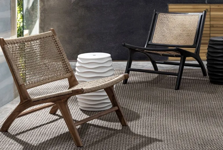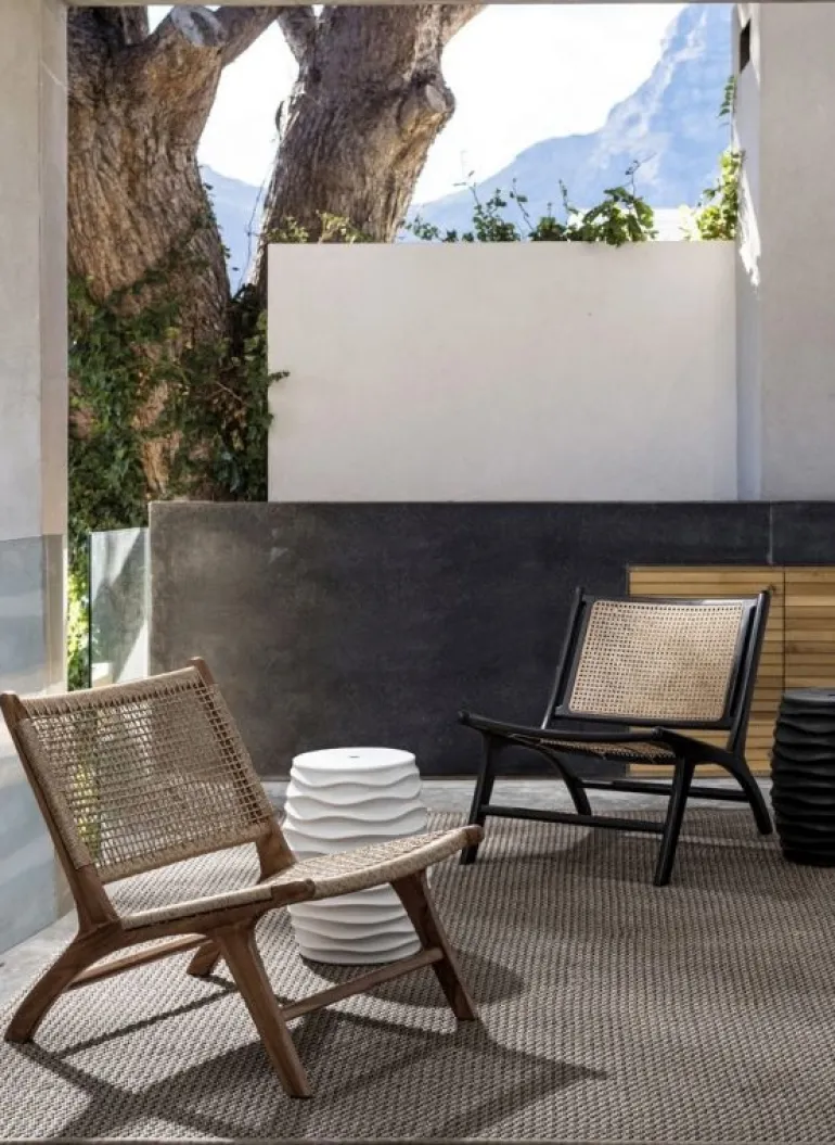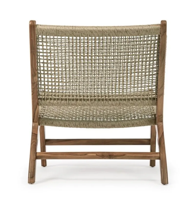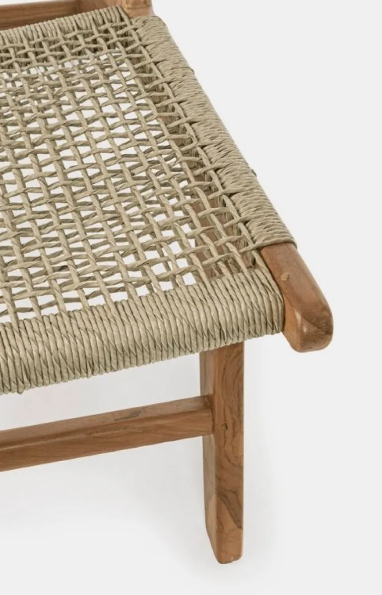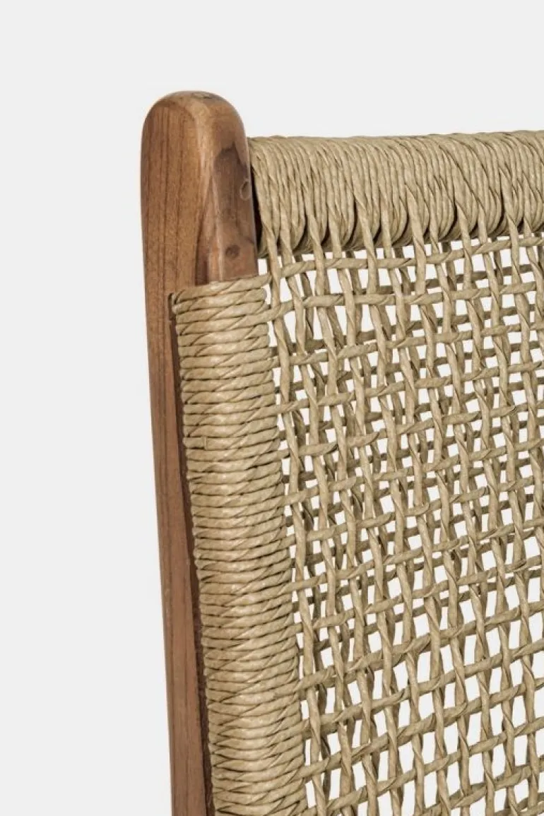 STRUTTURA IN LEGNO TEAK, SEDUTA E SCHIENALE CON INTRECCIO IN FIBRA SINTETICA (VIRO). FINITURA CON VERNICE A BASE D’ACQUA. SI RACCOMANDA DI NON ESPORRE L’ARTICOLO ALLA LUCE DIRETTA DEL SOLE ED ALLE INTEMPERIE. IMBALLO SENZA CARTONE.