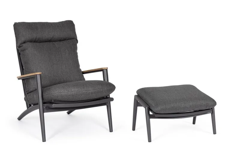 STRUTTURA IN ALLUMINIO VERNICIATO A POLVERE (POLIESTERE). SCHIENALE CON INTRECCIO IN CORDE DI POLIESTERE. BRACCIOLI CON INSERTI IN TEAK. CUSCINI SFODERABILI CON TESSUTO IDROREPELLENTE OLEFIN (100% POLIPROPILENE).