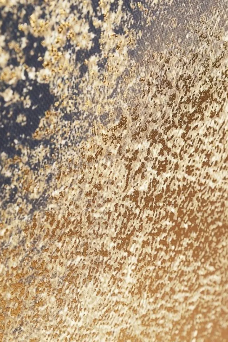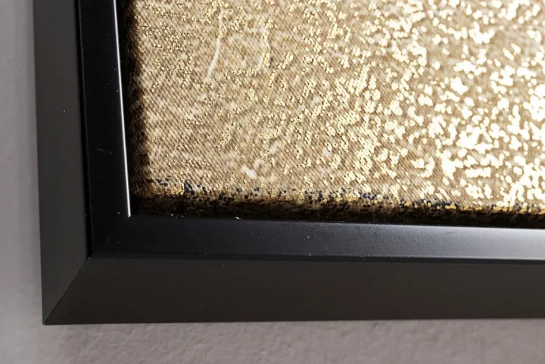 STAMPA SU TELA CON APPLICAZIONI FOGLI DORATI, LEGNO DI PINO.