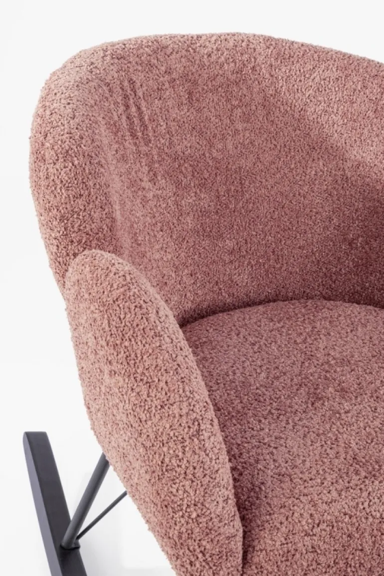 STRUTTURA IN ACCIAIO VERNICIATO A POLVERE EPOSSIDICA. GAMBE IN ACCIAIO VERNICIATE A POLVERE EPOSSIDICA E LEGNO RUBBER WOOD. RIVESTIMENTO IN POLIESTERE EFFETTO BOUCLE’. IMBOTTITURA IN SCHIUMA POLIURETANICA (DENSITA’ 25KG/M3 SEDUTA, 18KG/M3 SCHIENALE). GAMBE DA ASSEMBLARE.