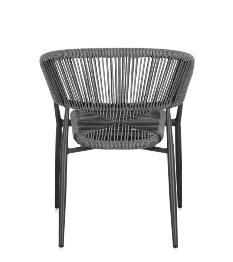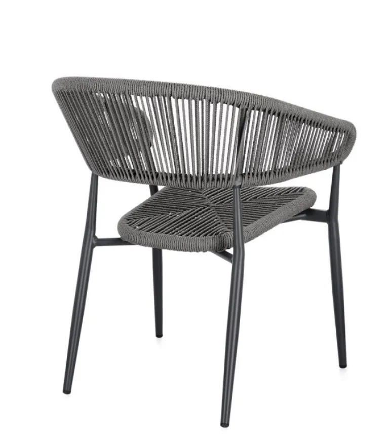 STRUTTURA IN ALLUMINIO, VERNICIATA A POLVERE (POLIESTERE), INTRECCIO IN FIBRA SINTETICA (TWISTED). IMPILABILE.