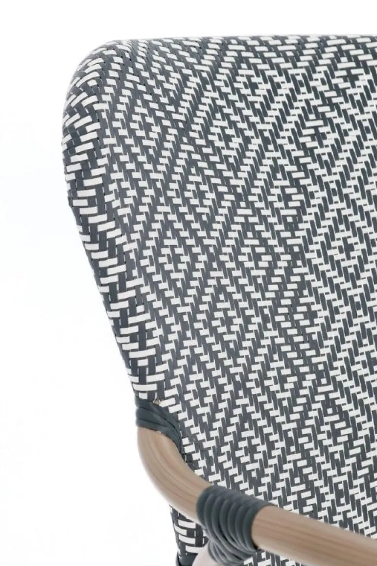 STRUTTURA IN ALLUMINIO VERNICIATA A POLVERE (POLIESTERE), EFFETTO NATURALE. SEDUTA E SCHIENALE IN TEXTILENE. IMPILABILE. IMBALLO SENZA CARTONE.