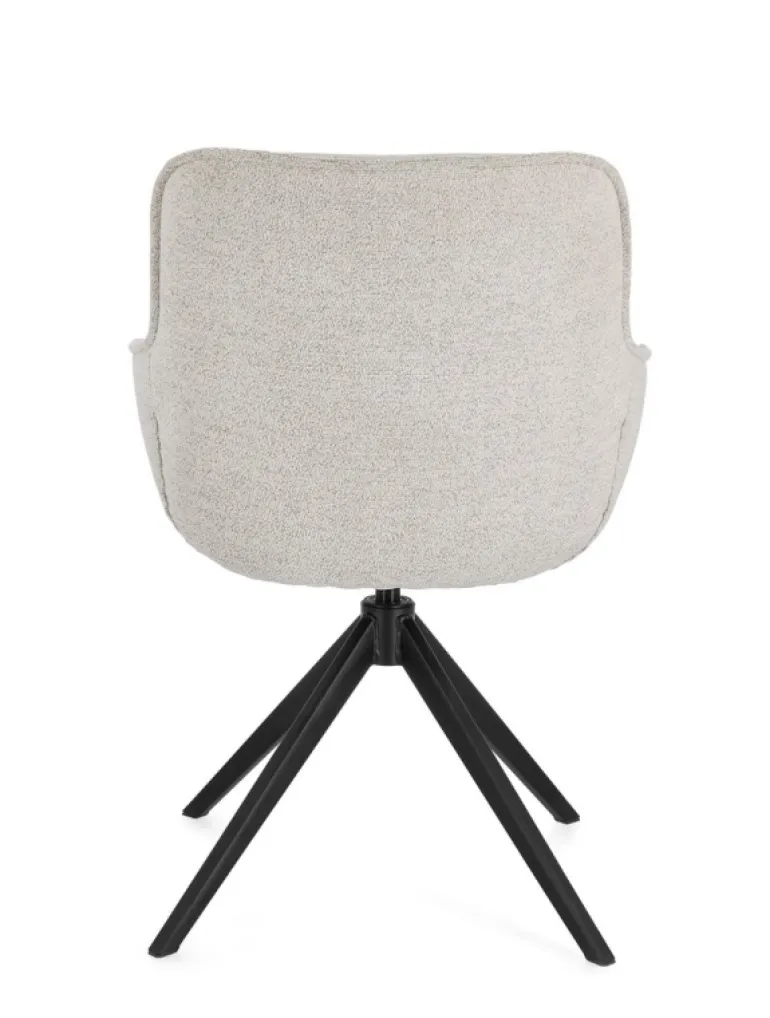 SEDUTA IN COMPENSATO CON IMBOTTITURA IN SCHIUMA POLIURETANICA. RIVESTIMENTO IN 100% POLIESTERE. GIREVOLE 360° CON MECCANISMO DI RITORNO. GAMBE IN ACCIAIO VERNICIATE A POLVERE EPOSSIDICA. GAMBE DA ASSEMBLARE.