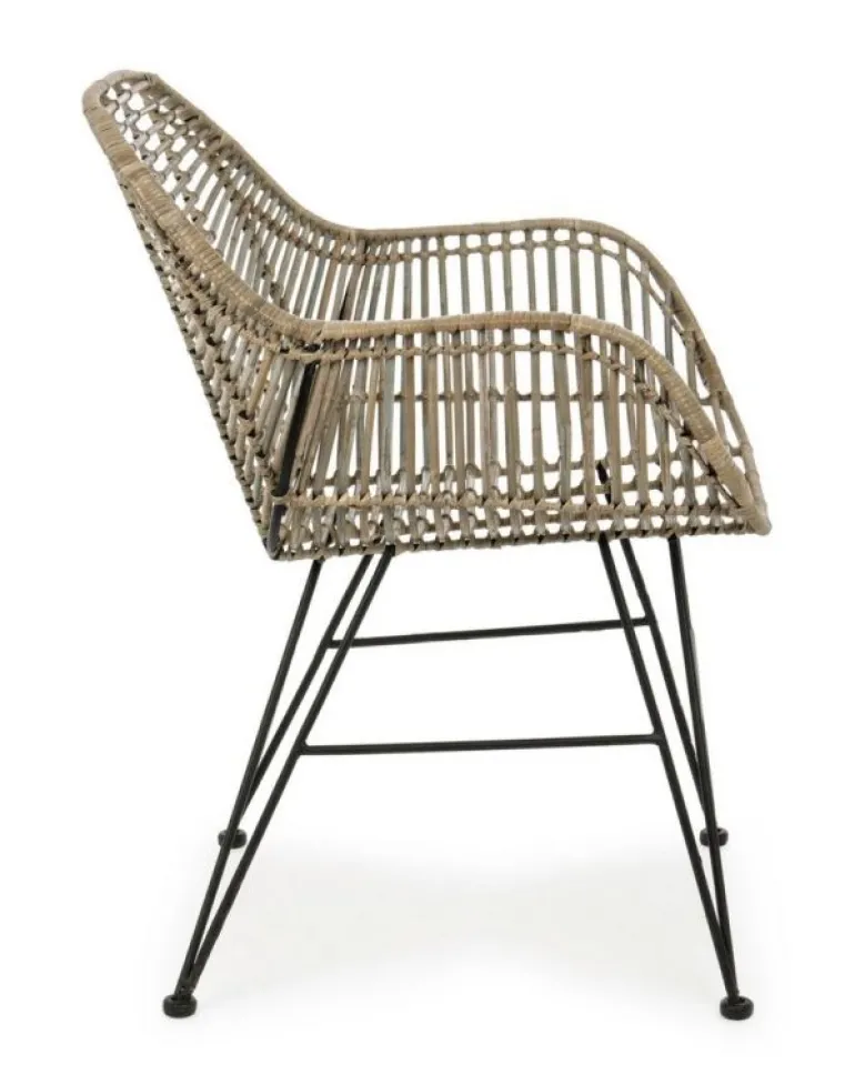 SEDIA CON BRACCIOLI IN FIBRE NATURALI – RAQUEL