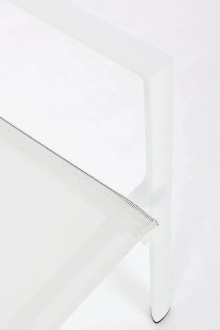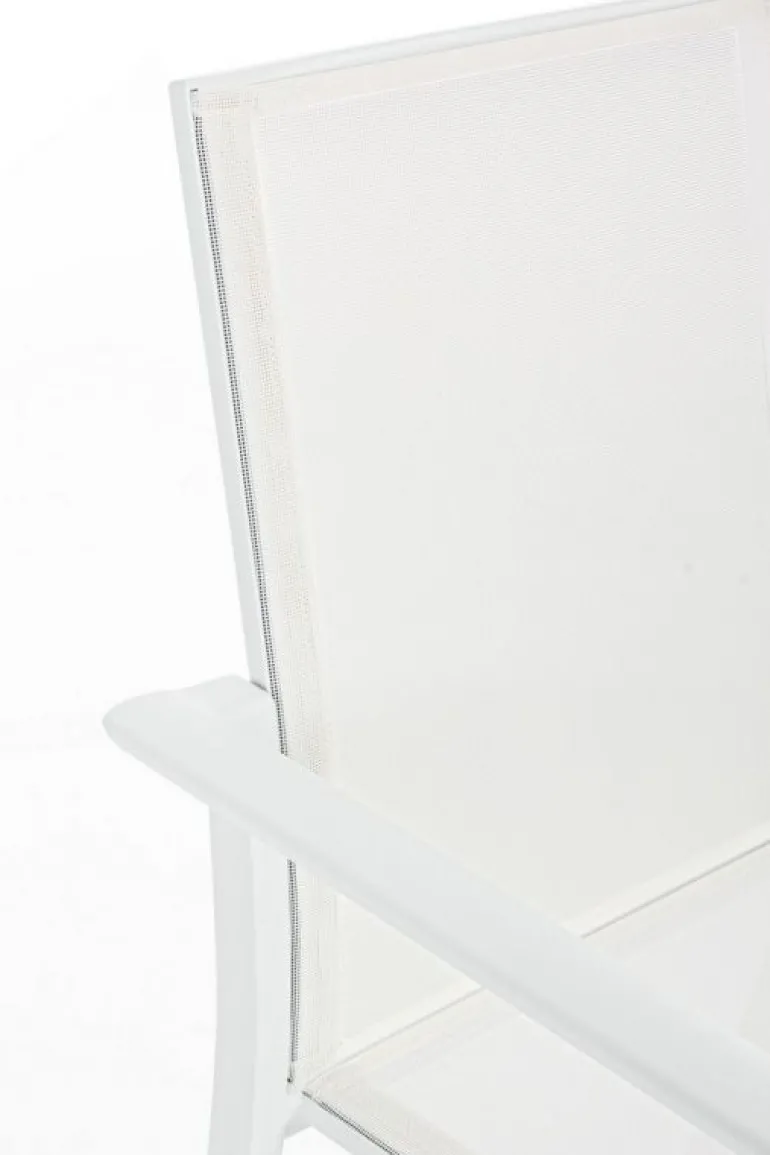 STRUTTURA IN ALLUMINIO, VERNICIATO A POLVERE (POLIESTERE). SEDUTA E SCHIENALE IN TEXTILENE 1X1. IMPILABILE.