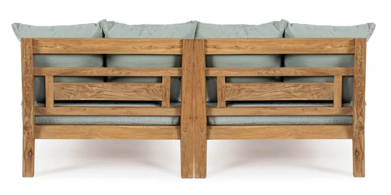 LEGNO TEAK FSC 100%, FINITURA SABBIATA ED ANTICATA A BASE D’ACQUA. CUSCINI SFODERABILI IN TESSUTO IDROREPELLENTE SUNPROOF OLEFIN (100% POLIPROPILENE). SI RACCOMANDA DI NON ESPORRE L’ARTICOLO ALLA LUCE DIRETTA DEL SOLE ED ALLE INTEMPERIE. QUESTO PRODOTTO È CARATTERIZZATO DALLA PRESENZA DI TASSELLI IN LEGNO DELLA STESSA NATURA. EVENTUALI FESSURE, CREPE O IMPERFEZIONI,