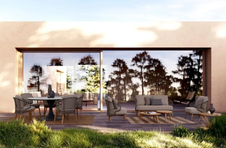STRUTURA IN TEAK – SVLK (LEGNO CERTIFICATO PROVENIENTE DA FORESTE SOSTENIBILI). VITERIA IN ACCIAIO INOSSIDABILE. GAMBE DA ASSEMBLARE.