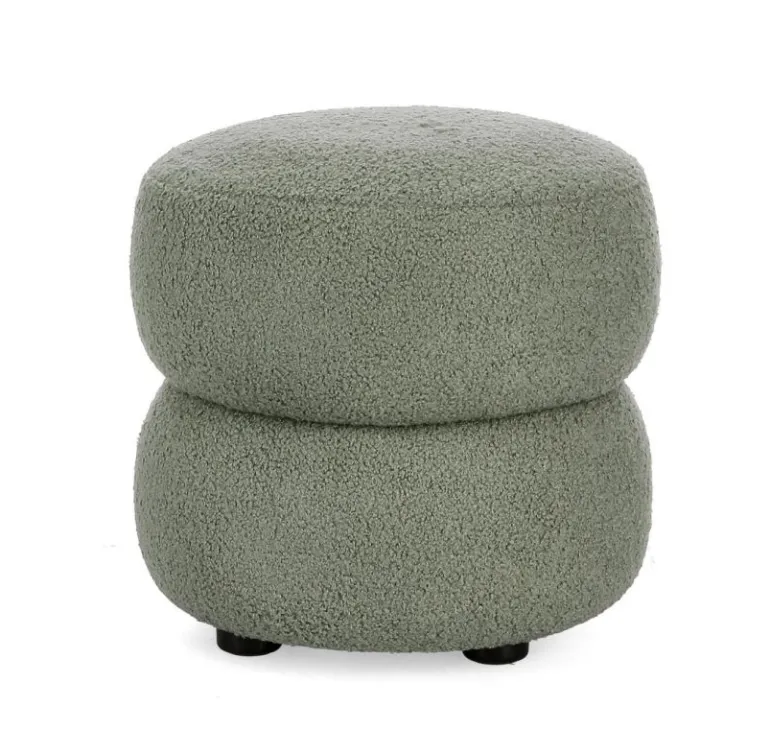 STRUTTURA IN COMPENSATO. RIVESTIMENTO IN POLIESTERE EFFETTO BOUCLE’. IMBOTTITURA IN SCHIUMA POLIURETANICA (DENSITA’ 24KG/M3). PIEDINI IN PLASTICA.
