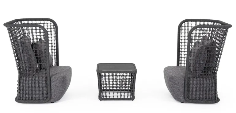 STRUTTURA IN ALLUMINIO VERNICIATO A POLVERE (POLIESTERE). INTRECCIO IN CORDA OLEFIN (100% POLIPROPILENE).