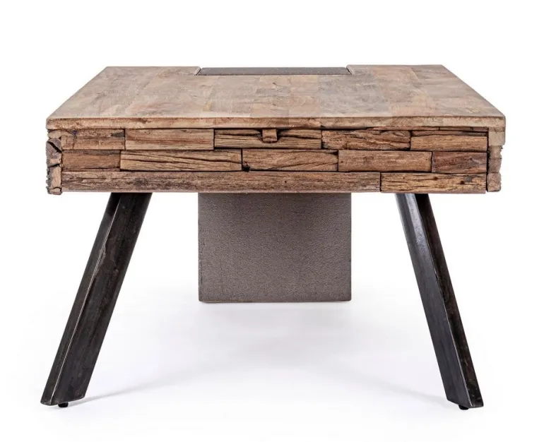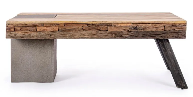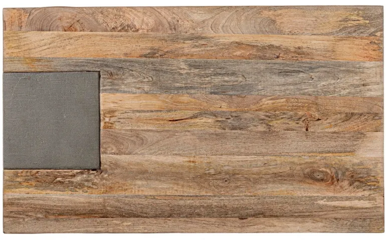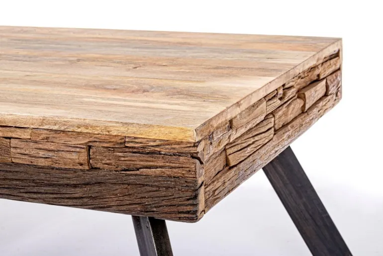 GAMBE IN ACCIAIO CON PIEDINI REGOLABILI, PIANO IN LEGNO DI MANGO E LEGNO RICICLATO. FINITURA ACRILICA PROTETTIVA. IL PRODOTTO IN LEGNO RICICLATO È CARATTERIZZATO DALLA PRESENZA DI TASSELLI IN LEGNO DI DIVERSE SPECIE E COLORE. EVENTUALI FESSURE, CREPE O IMPERFEZIONI, CHE POSSONO GENERARSI ANCHE NEL CORSO DEL TEMPO, SONO CARATTERISTICHE DI QUESTO MATERIALE E