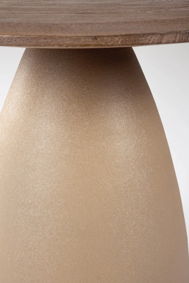 TOP IN LEGNO DI MANGO CON FORMA IRREGOLARE,CON VERNICIATURA A BASE D’ACQUA E FINITURA FINALE A BASE DI NITROCELLULOSA. BASE IN ACCIAIO VERNICIATO A POLVERE EPOSSIDICA EFFETTO MATERICO.BASE DA ASSEMBLARE