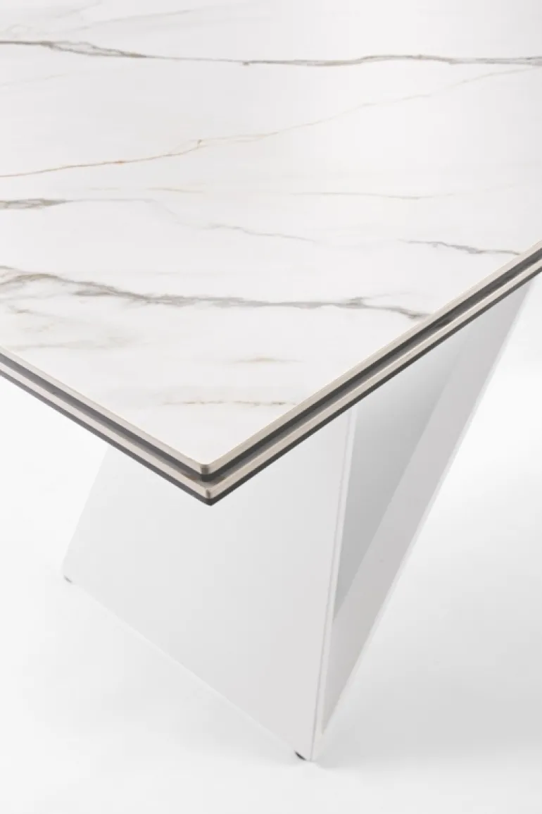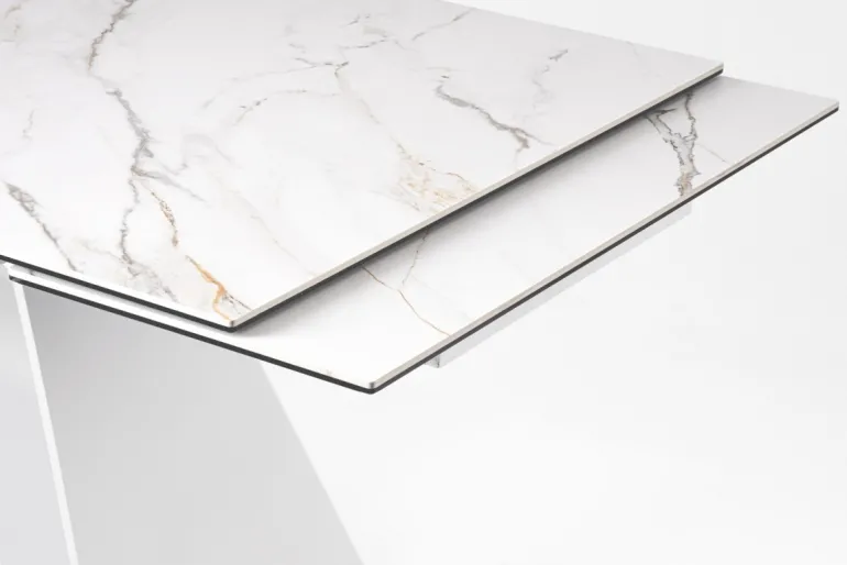 GAMBE E BASE IN ACCIAIO VERNICIATO A POLVERE. PIANO IN CERAMICA E VETRO TEMPERATO. DA ASSEMBLARE.