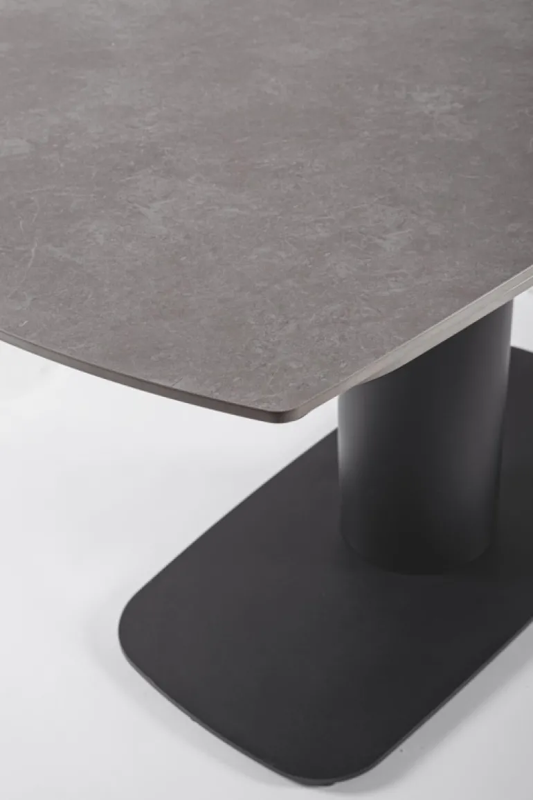 BASE IN ACCIAIO VERNICIATO A POLVERE EPOSSIDICA. PIANO IN GRES PORCELLANATO CON EFFETTO MARMO GRIGIO OPACO. DA ASSEMBLARE.