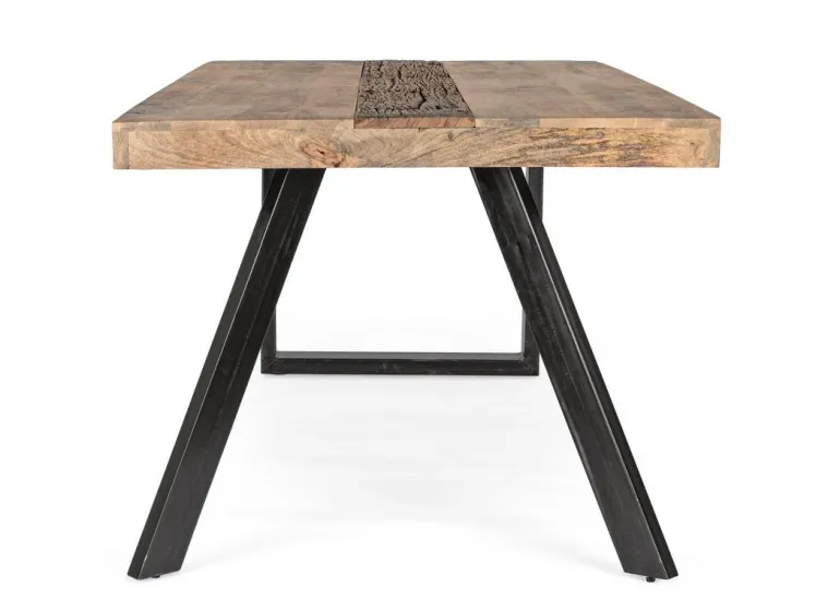 GAMBE IN ACCIAIO CON PIEDINI REGOLABILI, PIANO IN LEGNO DI MANGO E LEGNO RICICLATO. FINITURA ACRILICA PROTETTIVA. IL PRODOTTO IN LEGNO RICICLATO È CARATTERIZZATO DALLA PRESENZA DI TASSELLI IN LEGNO DI DIVERSE SPECIE E COLORE. EVENTUALI FESSURE, CREPE O IMPERFEZIONI, CHE POSSONO GENERARSI ANCHE NEL CORSO DEL TEMPO, SONO CARATTERISTICHE DI QUESTO MATERIALE E
