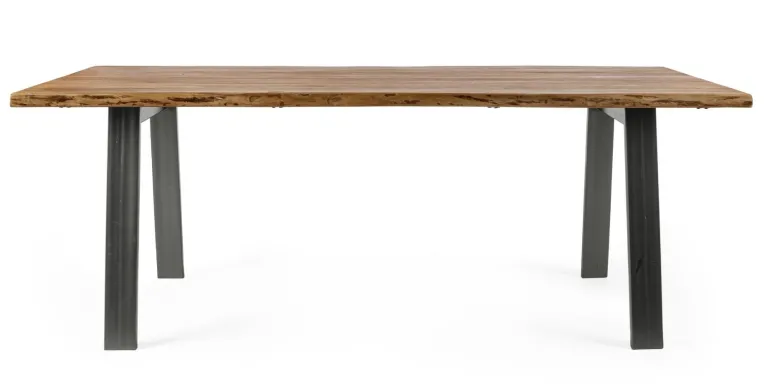 GAMBE IN ACCIAIO VERNICIATO A POLVERE EPOSSIDICA. PIANO IN LEGNO DI ACACIA CON BORDI IRREGOLARI (EFFETTO LEGNO VIVO). FINITURA A BASE DI VERNICE POLIURETANICA. ESSENDO UN PIANO LAVORATO A MANO, LE FORME E LE MISURE DEL LEGNO SONO SOLO INDICATIVE. TUTTI I PRODOTTI SARANNO DIVERSI L’UNO DALL’ALTRO. GAMBE DA ASSEMBLARE.