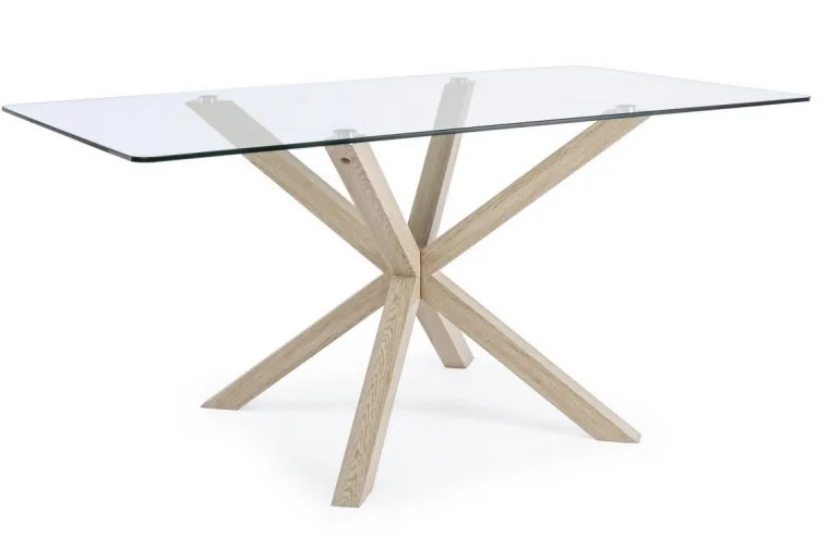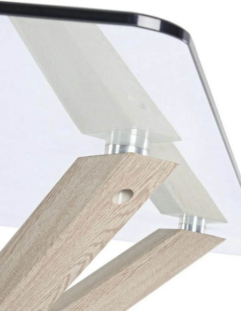 GAMBE IN ACCIAIO FINITURA EFFETTO LEGNO NATURALE. PIANO IN VETRO TEMPERATO SPESSORE 10MM. GAMBE DA ASSEMBLARE