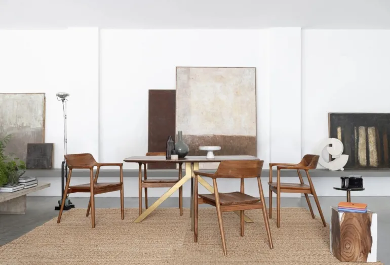 PIANO IN LEGNO DI MANGO CON FINITURA A BASE D’ACQUA. GAMBE IN ACCIAIO CON FINITURA PLACCATA OTTONE. GAMBE DA ASSEMBLARE.