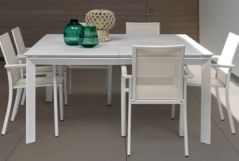 TAVOLO IN ALLUMINIO 110/160X160 BIANCO CX21 – KONNOR