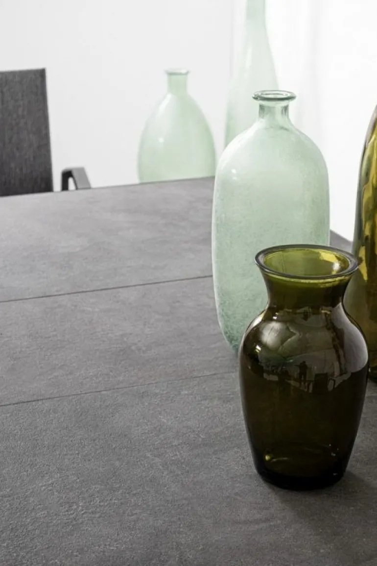 STRUTTURA IN ALLUMINIO VERNICIATA A POLVERE (POLIESTERE). PIANO IN CERAMICA (SPESSORE 10MM). VITERIA IN ACCIAIO INOSSIDABILE. GAMBE DA ASSEMBLARE.