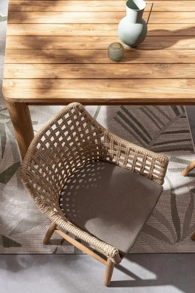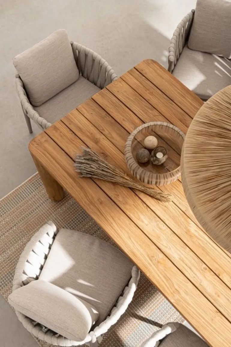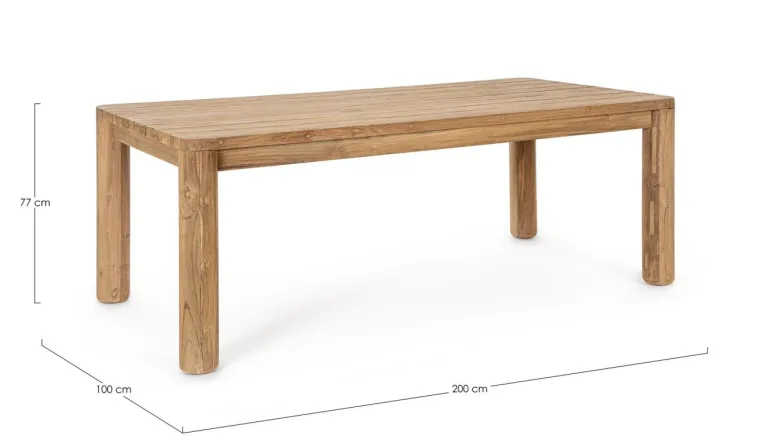 PIANO E GAMBE IN LEGNO TEAK RICICLATO – SVLK (LEGNO CERTIFICATO PROVENIENTE DA FORESTE SOSTENIBILI). FINITURA NATURALE SPAZZOLATA. VITERIA IN ACCIAIO INOSSIDABILE. IL PRODOTTO IN LEGNO RICICLATO È CARATTERIZZATO DALLA PRESENZA DI TASSELLI IN LEGNO DI DIVERSE SPECIE E COLORE. EVENTUALI FESSURE, CREPE O IMPERFEZIONI, CHE POSSONO