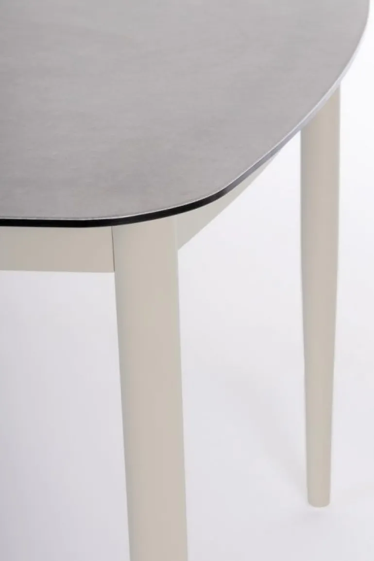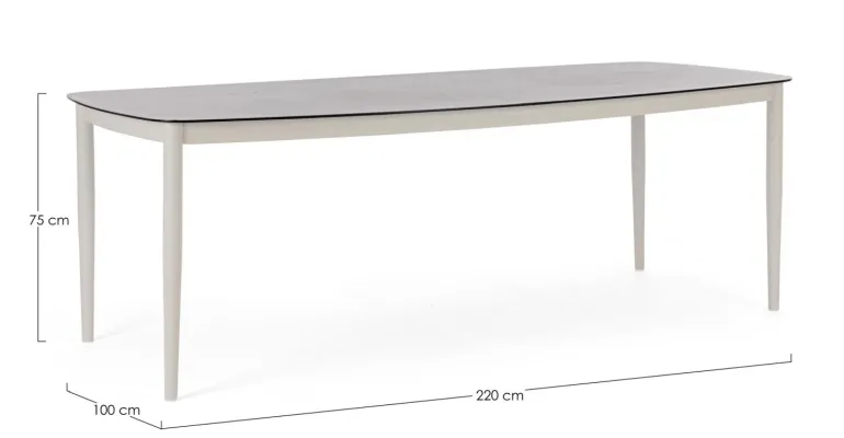 STRUTTURA IN ALLUMINIO VERNICIATO A POLVERE (POLIESTERE). PIANO IN VETRO CON EFFETTO MATERICO DI PIETRA NATURALE. VITERIA IN ACCIAIO INOSSIDABILE. GAMBE DA ASSEMBLARE.