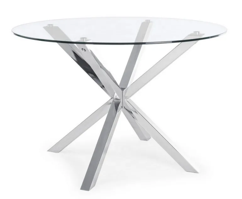 GAMBE IN ACCIAIO CROMATO. PIANO IN VETRO TEMPERATO SPESSORE 10MM. GAMBE DA ASSEMBLARE.