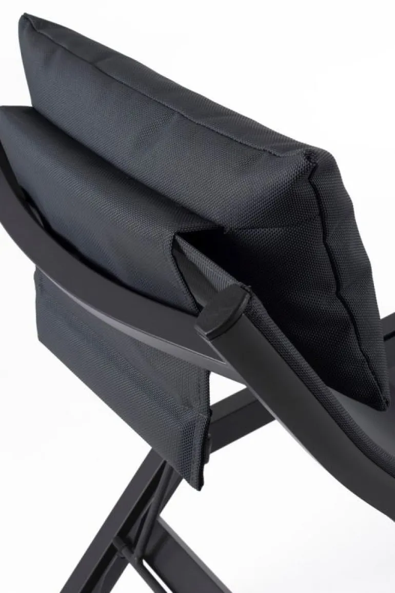 STRUTTURA IN ALLUMINIO VERNICIATA A POLVERE (POLIESTERE). RIVESTIMENTO IN TEXTILENE 1X1. SCHIENALE RECLINABILE IN 3 POSIZIONI. CUSCINO POGGIATESTA CON IMBOTTITURA PER ESTERNO FAST DRY FOAM, REMOVIBILE E SFODERABILE. VITERIA IN ACCIAIO INOSSIDABILE. DA ASSEMBLARE.